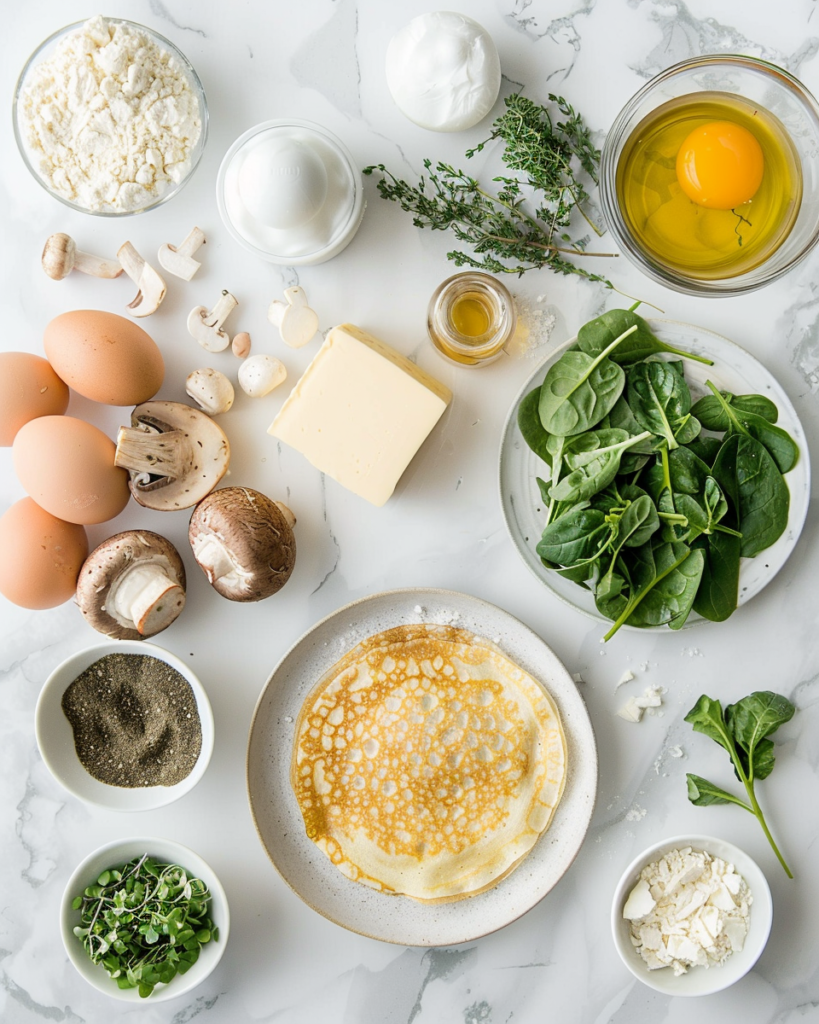 • Spinach and mushroom crepes: Perfect for a vegetarian brunch.